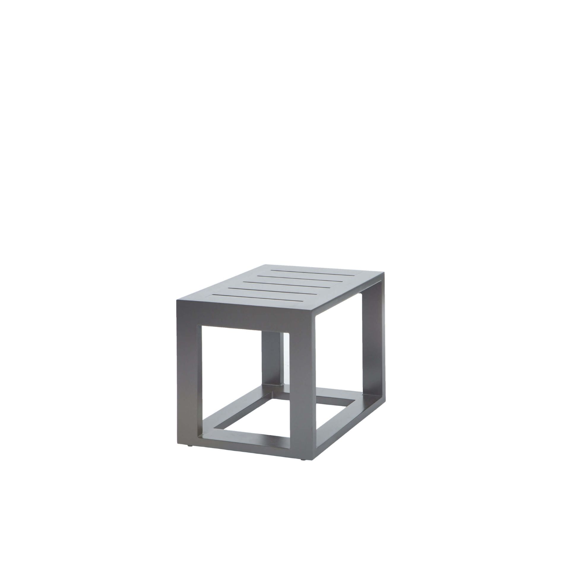 Stylish, slatted aluminum side table: compact, weather-resistant and perfect for outdoor lounges or poolside setups.