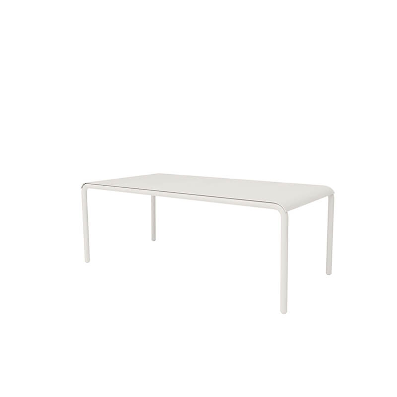 Minimalist outdoor coffee table: metal top, rust-resistant aluminum frame, lightweight and low upkeep for stylish pool-side or lounge settings.