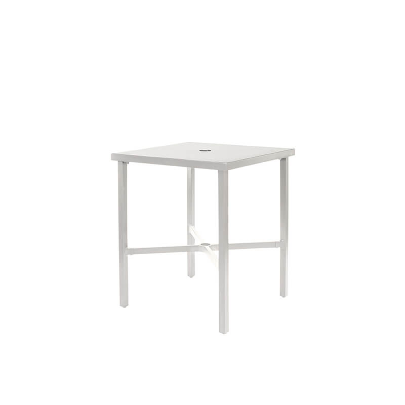Compact counter-height dining table: rust-resistant aluminum frame, square top, perfect for pool bars, patios, or intimate outdoor meals.