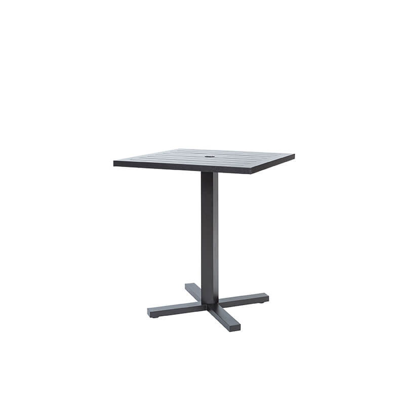 Counter-height square table: durable aluminum frame, ideal for four. Stylish and sturdy for elevated outdoor dining and bar areas.