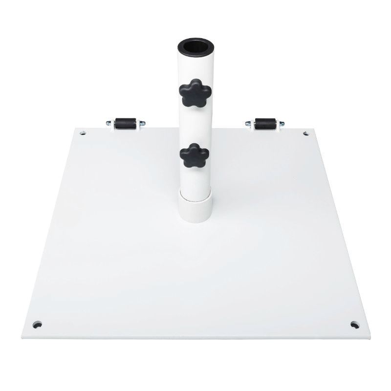 This 75 pound powder coated steel umbrella base features wheels for portability. Use this base for freestanding umbrellas on a pool deck or patio. This umbrella base can be used portable or can be bolted down for stability. The stem is 1.5" wide, suitable for standard umbrella poles.