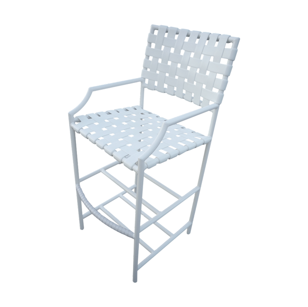 The Brazil Crossweave Vinyl Strap Bar Height Arm Chair offers a modern design that is sure to make a statement in any space. Its Brazilian-inspired frame and high-quality aluminum construction are perfect for commercial settings such as hotel bars, casual dining areas, beachside resorts, and balconies. Pick between a smooth or textured finish in our wide selection of colors to make this chair pop. It features double-wrapped vinyl and additional foot braces to provide superior support and comfort. UV inhibitors prevent the straps from fading so this chair looks great for a long time. No maintenance is required for this stylish chair, making it ideal for heavy commercial use. Upgrade your space with the Brazil Crossweave Vinyl Strap Bar Height Arm Chair, the perfect addition to any outdoor area.