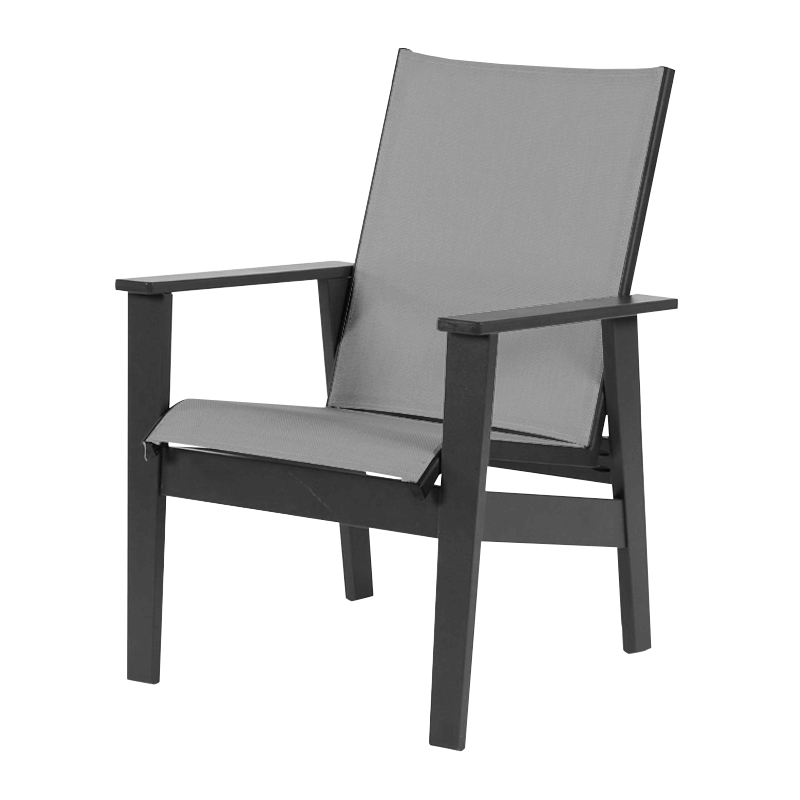 Sienna Sling Dining Arm Chair is seated with an attractive Grade B double-stitched sling fabric in a variety of popular colors. Features a heavy-duty Marine Grade Polymer(MGP) frame that is supported by stainless steel hardware. This commercial grade pool furniture collection is a must-have for 5-star hotels, resorts, and country clubs. The slings are inserted in rails and are replaceable. Because of this construction, the factory provides a 5-year warranty against frame breakage and a 1 year for slings under normal conditions.