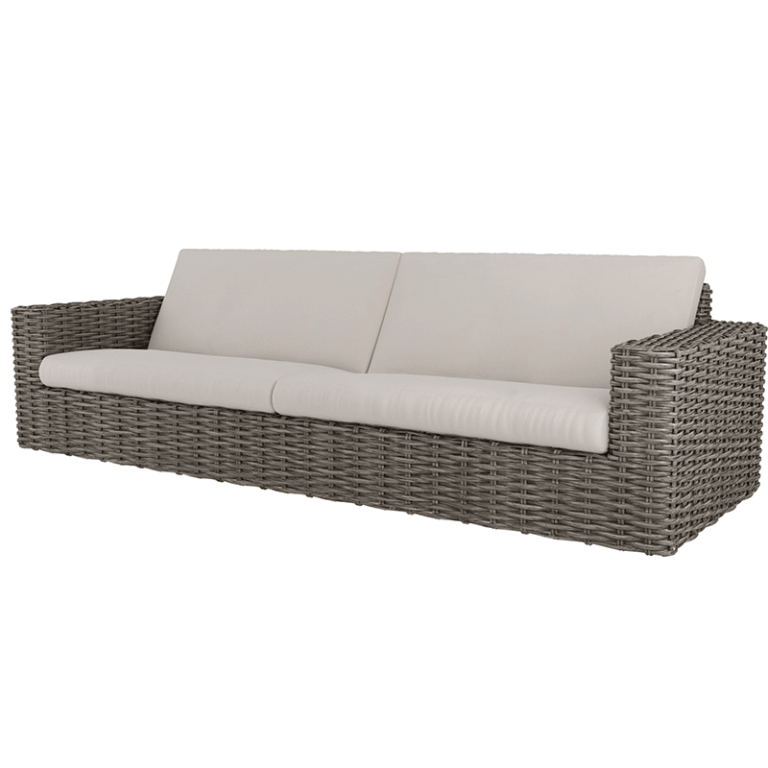 The Mia Woven Cushion XL Sofa is a stately, handwoven masterpiece weighing 134 lbs and stretching 112″ wide. Its sleek Eco-Weave frame, crafted from recycled ocean plastic, rests on a powder-coated aluminum substructure that resists rust and UV damage. With deep 6″ seat and back cushions (2 seats, 2 backs) in your choice of premium fabrics, it delivers lush comfort and clean modern lines. Whether styled in Barley or Fog weave, it complements any outdoor setting with sustainable elegance, durability against the elements, and effortless maintenance.