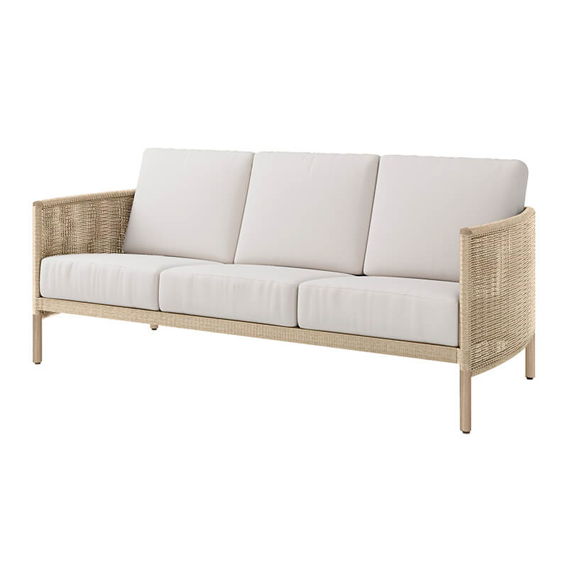 Spacious and stylish: Orleans sofa with open weave, deep 6″ cushions, and weather-resistant frame built for grand outdoor lounging.