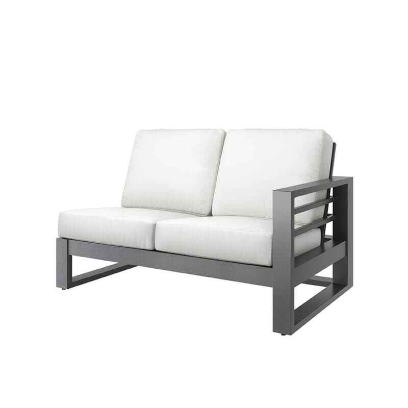 Left-arm sectional seat with deep cushioning, weather-tough aluminum frame—designed for flexible outdoor lounging with elegance.