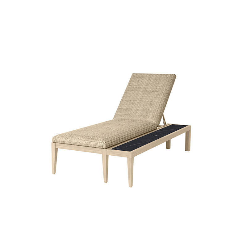 Coordinated chaise + table set: Siena’s adjustable lounge and matching table blend woven elegance with seamless comfort for outdoor luxury.