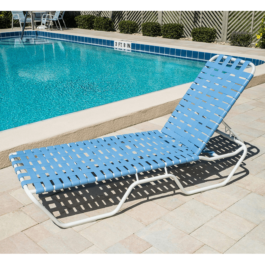 The St. Maarten II Basketweave Vinyl Strap Pool Lounge Chair is designed for comfort, durability, and efficiency, making it a top choice for beach hotels, resorts, and HOAs. Built for high-traffic outdoor spaces, this chair offers both reliability and style while maximizing storage and usability. Crafted with a 1” round aluminum extrusion frame, this lounge chair is powder-coated for long-lasting durability and resistance to outdoor elements. The 2” virgin vinyl straps feature a basketweave design, expanding both horizontally and vertically to provide enhanced support and comfort for guests. With a comfortable 12” low profile seat height, this chair is easily accessible and ergonomically designed for relaxation. Its sled base design prevents sinking into sand or soft grass, making it ideal for beachfront properties and lawns. For patios and hard surfaces, the frame is equipped with solid aluminum skids to prevent marring and surface scratches. For even greater protection on tiles and pavers, an upgrade to Nylon Super Glides is available. Designed with space efficiency in mind, this stackable lounge chair allows for compact storage, an essential feature in commercial settings where maximizing space is key. Proudly Made in the USA, the St. Maarten II Basketweave Vinyl Strap Pool Lounge Chair delivers a perfect balance of affordability, durability, and practicality, making it a must-have for any poolside or beachfront setting.
