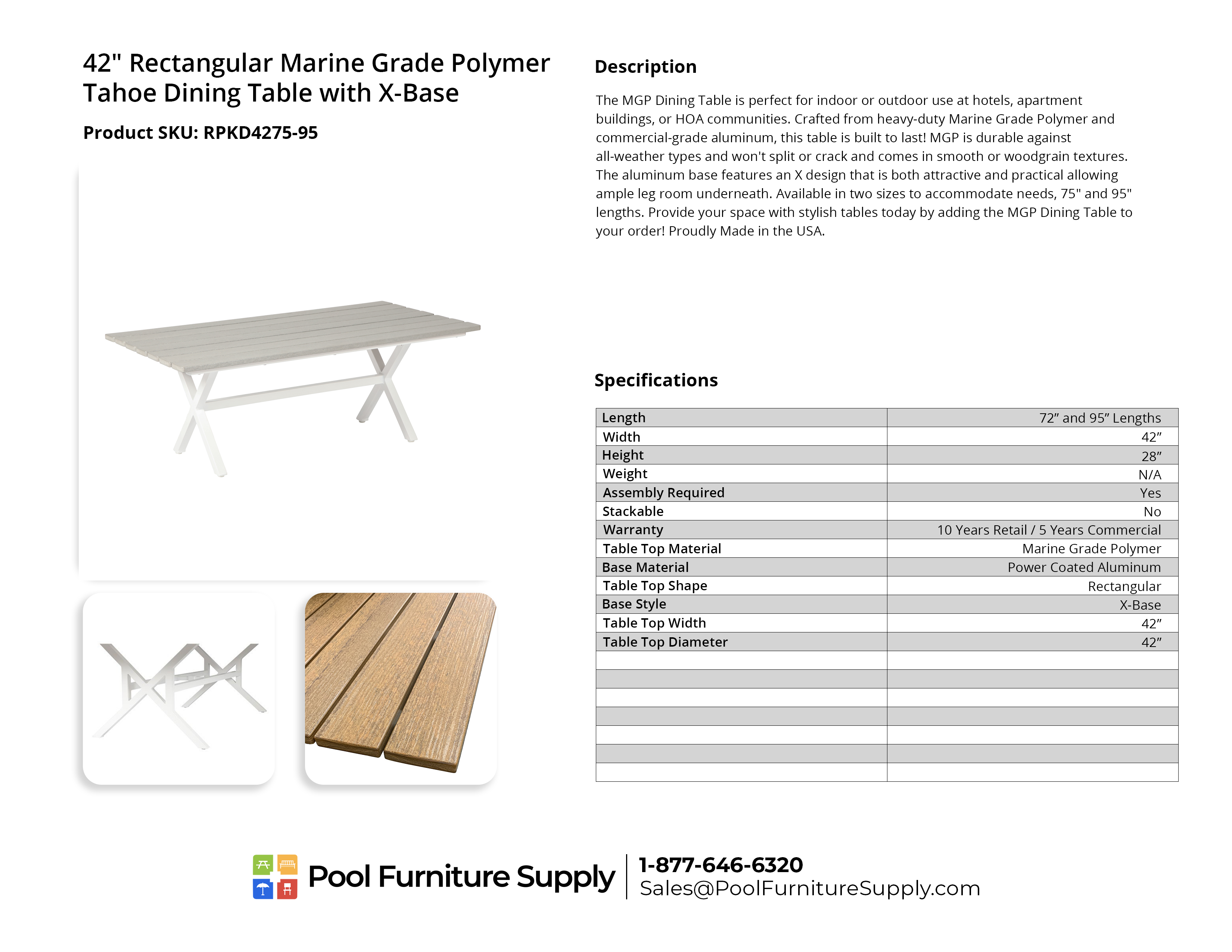 Our Tahoe Plank Dining Table is perfect for dining halls, banquet rooms, or casual patio dining. The tabletop is constructed of marine-grade polymer planks in a choice of colors including woodgrain options that offer a wood-like appearance without the drawbacks of wood. MGP doesn't crack or split and is built for all-weather.