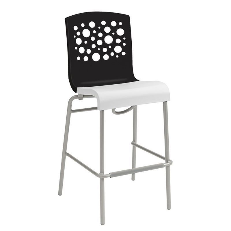 Attract guests to your outdoor bar with this two-toned Tempo stackable bar chair! Made from commercial grade plastic resin for the seat and aluminum legs, this chair can be set on your outdoor patio without rusting, warping, or cracking. Ideal for locations with both indoor and outdoor dining accommodations, such as hotels, restaurants, bistros, and resorts. A comfortable contoured shape that is easily stacked for storage or transport. Proudly made in the USA and supported with a 3-year commercial warranty. Call Pool Furniture Supply when furnishing your entire patio and receive a quantity package discount on your specialized quote.