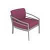 This Tropitone KOR Cushion Lounge Armchair features comfortable cushions with breathable reticulated foam filling. The well-crafted aluminum frame offers upscaled features like double bar sloped arms and curve angled legs. This sleek contemporary look is inspired by mid-century modern design to add sophistication to any patio or lounge. Protected with a strong powder-coating to prevent rust, fade, and chip ensuring this low-maintenance armchair looks great for years. Choose from our wide selection of commercial-grade outdoor fabrics and rich powder-coated finishes for a unique combination suitable for your space. Perfect for hotels, resorts, and country clubs looking to upgrade their image. Call today to get a great quantity discount on our Tropitone Kor Patio Furniture Collection.